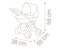 Carrozzina Baby Nurse con cappottina reclinabile, copertina, piano portaoggetti. Struttura in metallo e plastica. La carrozzina è alta 55 cm. Per bambole fino a 42 cm. Bambola non inclusa. Made in Spain