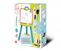 Lavagna in plastica con piedini antiscivolo, 2 in 1 per scrivere e disegnare utilizzando i pennarelli oppure i gessetti. Si fissa facilmente. Ripiano per mettere i pennarelli e i gessetti. Si piega per essere riposta facilmente e non occupare spazio. Inclusi gessetti e un pennarello lavabile.