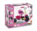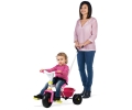 Triciclo evolutivo con telaio in metallo. Grande sella con cinture di sicurezza regolabili. Benna posteriore portaoggetti. Asta parentale removibile. Pedali antisdrucciolo. Sistema a ruota libera anteriore.