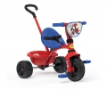 Triciclo evolutivo con telaio in metallo. Grande sella con cinture di sicurezza regolabili. Benna posteriore portaoggetti. Asta parentale removibile. Pedali antisdrucciolo. Sistema a ruota libera anteriore. Made in Spain