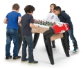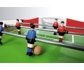Calcetto dotato di aste con maniglie ergonomiche. Stabile struttura in legno e plastica soffiata. Foro per lancio pallina. Segnapunti.