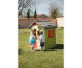 Casetta da giardino con due mezze porte, due finestre con persiane richiudibili e una vera mangiatoia per gli uccellini. Completamente modulare: presenta la possibilità di aggiungere diversi accessori (venduti separatamente) come angolo cucina con barbecue, tavolo pic nic, pluviale con serbatoio per la raccolta dell'acqua, staccionata con fioriere... per dar vita alla casa dei propri sogni! Trattamento anti-UV per garantire la durata dei colori nel tempo. Made in France