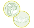 Casetta da giardino dotata di 2 finestre con persiane, una porticina sul davanti realizzata in plastica soffiata. Struttura robusta con divertenti disegni in rilievo sulle pareti laterali. Sabbiera 76x76cm inclusa nella confezione. La sabbiera può essere trasformata in aiuola per orto. Telo per la sabbiera incluso. La sabbiera può contenere 75kg di sabbia oppure 60-70 litri di terriccio, se utilizzata come aiuola per orto. La sabbiera è realizzata in plastica 100% riciclata e riciclabile. Trattamento anti-UV per garantire la durata dei colori nel tempo. Made in France
