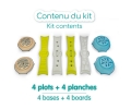 - Grazie ai rilievi presenti sulle basi e sulle tavole, studiati per simulare materiali diversi, è un ottimo strumento per risvegliare la sensorialità dei più piccoli