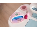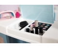 Sono inclusi 32 accessori per rendere il gioco ancora più divertente e realistico: 1 asciugacapelli con luci e suoni e 2 bocchette differenti, 1 paio di forbici giocattolo, 1 piastra per capelli con funzione meccanica, 1 pettine, 1 spazzola, 2 smalti, 1 finta lampada UV elettronica per la manicure con funzione sonora e luce blu, 1 cerchietto, 1 anello, 1 palette di ombretti, 2 rossetti con funzione meccanica, 1 mascara, flaconi crema e profumo, 3 monete , 4 ricevute, 1 carta di credito. Gli accessori make up inclusi non sono veri trucchi.