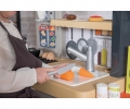 Smoby Chef Corner Restaurant è un vero e proprio ristorante che racchiude in sé tutte le funzioni legate alla preparazione e al servizio del cibo! Si compone di tre aree gioco. C'è la cucina dove preparare i piatti: per cucinare come un vero chef tante ricette gustose e divertenti, grazie ai 70 accessori inclusi (casseruola, padella per i pancake, posate, piatti, bicchieri, sale, pepe, hamburger, pizza, uovo sodo che si sbuccia davvero, pasta termosensibile, carota da affettare ecc.)! Accanto alla cucina c’è la penisola con sgabello dove il cliente può divertirsi ad ordinare un piatto dal menu e assaggiare le preparazioni dello chef!