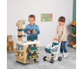 Piccolo mercato con 34 accessori inclusi. Registratore di cassa con funzioni elettroniche. Lettore di codici a barre elettronico (suono e luce). Carrello. Made in France